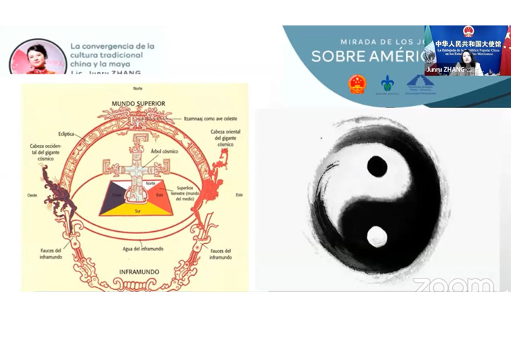 12/12/2021, Xalapa, Ver.- Junru ZHANG, tercera secretaria de la sección administrativa de la Embajada China en México, dialogó el 2 de diciembre sobre las similitudes que existen entre las culturas maya y china, dentro del ciclo de webinars “Mirada de los jóvenes chinos sobre América Latina”, organizado por la Embajada de la República Popular China y el Centro de Estudios China-Veracruz (Cechiver).