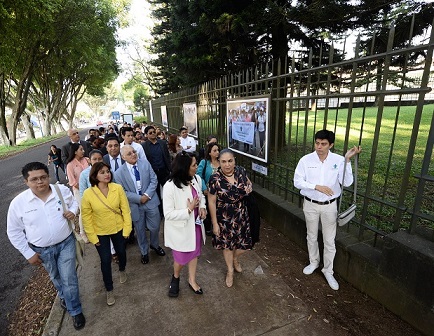 Acompañada de funcionarios e integrantes de la comunidad universitaria, la Rectora observó las imágenes en gran formato colocadas en las rejas del Museo de Antropología de Xalapa (MAX), sobre la Avenida Primero de Mayo.