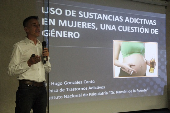- Hugo González Cantú, coordinador de la Clínica de Trastornos Adictivos del Instituto Nacional de Psiquiatría, ofreció la ponencia “Uso de sustancias adictivas en mujeres, una cuestión de género”