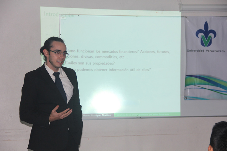 Xalapa, Ver., 18/02/2017.- Carlos Manuel Rodríguez Martínez es el primer egresado de la Maestría en Física de la Universidad Veracruzana (UV) en titularse, y lo hizo con la investigación “Análisis de los trends generados por series financieras”, en la que analizó estadísticamente los indicadores económicos para entender el funcionamiento de los mercados financieros.