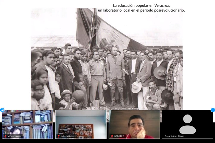 En seguida, Claudia Tomic Hernández Rivera, investigadora del Instituto Nacional de Antropología e Historia (INAH) Delegación Veracruz, presentó “La educación popular en Veracruz, un laboratorio local en el periodo posrevolucionario”.