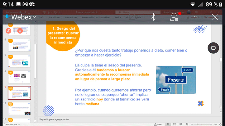 La ponente mostró los principales sesgos de carácter psicológico que inciden en la toma de decisiones financieras, los cuales no percibimos “que también formarán parte de las ideas que tenemos sobre el ahorro y los mercados financieros”.