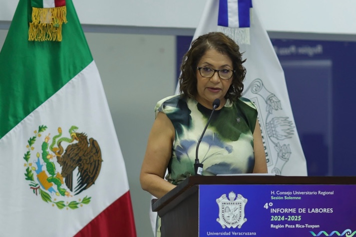 08/10/2025, Poza Rica, Ver.- En cumplimiento a la misión de formar profesionales competentes orientados a la transformación social con un sentido de responsabilidad que contribuya a resolver los desafíos globales, la vicerrectora de la región Poza Rica- Tuxpan de la Universidad Veracruzana (UV), Liliana Cuervo López, rindió su Cuarto Informe de Labores.