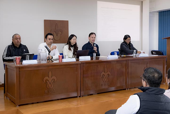 En la primera de las dos mesas de discusión, “Experiencias internacionales de profesores universitarios”, participaron Tong Wu, de la Universidad de Ciencias y Tecnología de Chongqing, China; Alfonso Rodríguez Oramas, del Instituto de Investigaciones en Educación UV; Jacob Isaías Bañuelos Trejo, de la Facultad de Ciencias Agrícolas, y Rosbenraver López Olivera, del Centro de Idiomas de Xalapa.