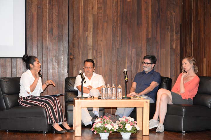 En la mesa de diálogo participaron: Mauricio Castillo, fotógrafo, artista visual, promotor cultural, ambientalista, fundador del Centro Comunitario “Jardín Contemporáneo” y del Centro Cultural Espacio Índigo; Helena Braunštajn, curadora, gestora y asesora en proyectos culturales, así como co-curadora de Aguazal Producciones, una plataforma de investigación y producción de arte; y Felipe Zúñiga, gestor cultural, curador de arte, docente y cofundador de la plataforma Arte-Educación.