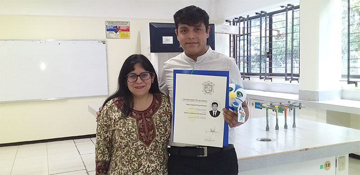Miguel Ángel agradece a la UV y a la Facultad de QFB por haber creído en él y aceptarlo. Reconoce que no fue fácil adaptarse porque nunca había llevado materias de laboratorio. A pesar de ello decidió vencer esos obstáculos y enfrentar con esfuerzo y dedicación cada una de las experiencias educativas.