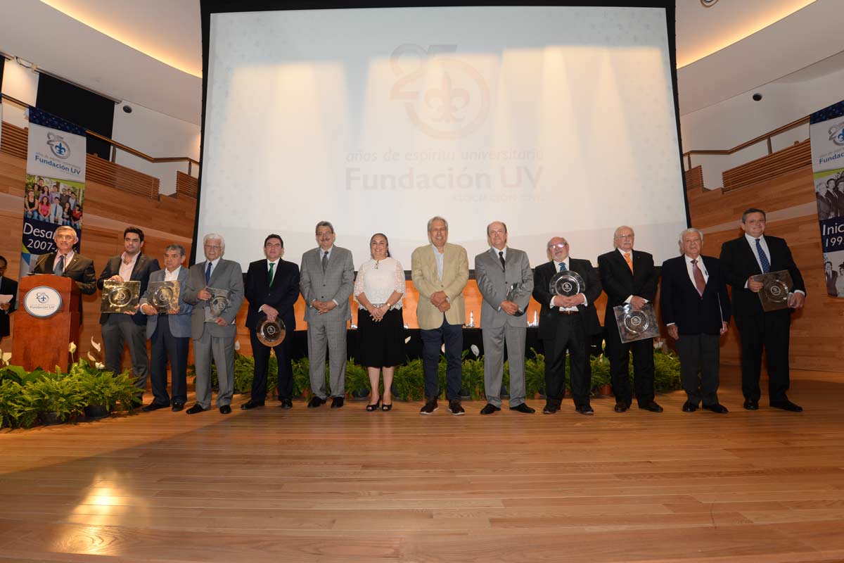 La ceremonia fue encabezada por la rectora de esta casa de estudio, Sara Ladrón de Guevara, y el presidente de la Junta Directiva de la Fundación UV, Víctor Aguilar Pizarro; acompañados por la secretaria Académica, Leticia Rodríguez Audirac; el secretario de Administración y Finanzas, Gerardo García Ricardo; y el secretario de la Rectoría, Octavio Ochoa Contreras.