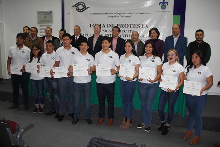 17/11/18, Xalapa.- Estudiantes de la Facultad de Ingeniería Civil de la Universidad Veracruzana (UV) rindieron protesta como integrantes de la II Mesa Directiva del Capítulo Estudiantil de la Asociación Mexicana de Ingeniería de Vías Terrestres, que tiene la tarea de promover e impulsar entre la comunidad estudiantil esta área de conocimiento, mediante la participación en actividades extracurriculares para complementar los conocimientos adquiridos en las aulas.