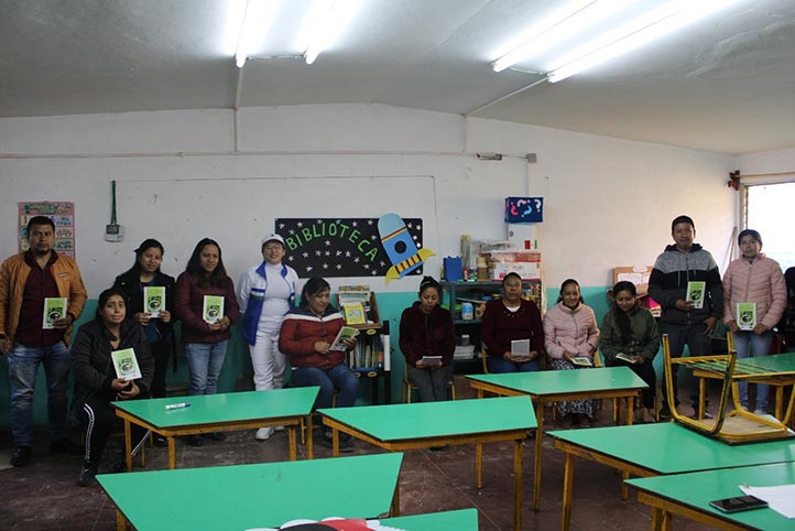 Entrega de recetario colaborativo como retribución comunitaria en uno de los grupos de la Escuela Primaria de San Marcos Atexquilpan, Naolinco