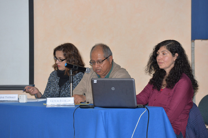 La mesa fue moderada por Virginie Thiébaut; también participaron Efraín Quiñonez León, Víctor Manuel Andrade Guevara y Judith Guadalupe Páez Paniagua, todos ellos investigadores del IIH-S.