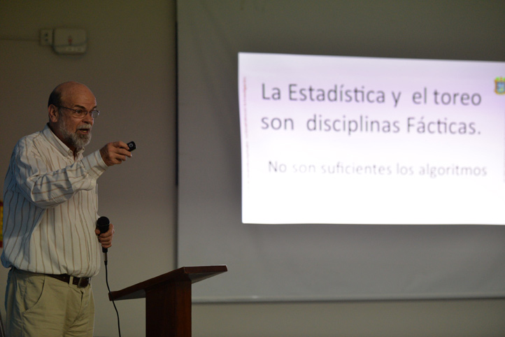 Xalapa, Ver. 25/05/2016.- Roberto Behar Gutiérrez, profesor de la Facultad de Ingeniería de la Universidad del Valle, Cali, Colombia, recomendó abandonar la comodidad de enseñar la estadística como si fueran matemáticas, porque es una disciplina que se basa en hechos.