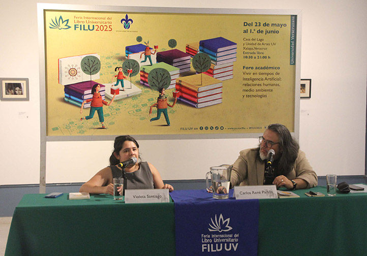 02/06/2025, Xalapa, Ver.- Violeta Santiago, periodista y escritora, contó que Las llamas danzantes es resultado de todo aquello que no había contado y se quedó después de documentar realidades dolorosas: accidentes, desapariciones y asesinatos, al presentar su libro en la Feria Internacional del Libro Universitario (FILU) 2025, organizada por la Universidad Veracruzana (UV).