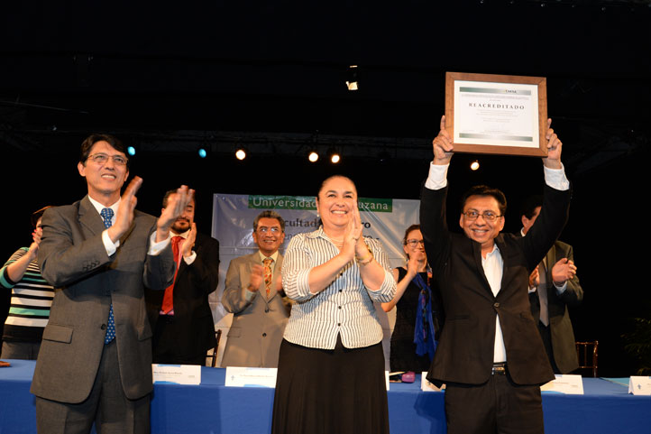 “Eso significa que estamos no sólo repitiendo el conocimiento, sino generando más conocimiento, lo cual es tan importante para crear identidad propia y expresar nuestras ideas”, dijo. Acto seguido, entregó el reconocimiento de reacreditación a las autoridades universitarias, lo cual fue motivo de júbilo para los ahí reunidos.