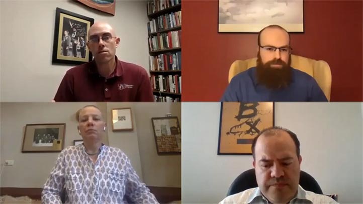 Los asistentes fueron Barclay Key, de la University of Arkansas at Little Rock; Thomas Hayes, de la Universidad de Connecticut; y Emma Bailey, de la UV, quienes dialogaron sobre las desigualdades que evidenció la pandemia de Covid-19 y las protestas contra la represión policiaca que han ocurrido en Estados Unidos.