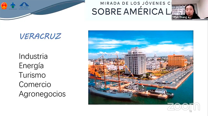 15/12/2021, Xalapa, Ver.- Yifan Zhang, agregada de la sección Económica y Comercial de la Embajada de la República Popular China en México, impartió la conferencia “Empresas chinas participan activamente en la cooperación económica y comercial con México”, como parte del ciclo de webinars “Mirada de los jóvenes chinos sobre América Latina”.