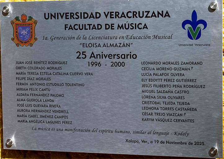 Para celebrar el 25 aniversario del egreso de la primera generación de la Facultad de Música, fue develada una placa conmemorativa