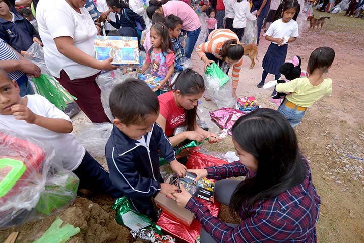 A las 11:00 horas, este grupo conformado en su mayoría por jóvenes voluntarios arribó a la comunidad de Nueva Villa, donde 22 niños de la Escuela Primaria “Josefa Ortiz de Domínguez” esperaban ansiosos los regalos enviados por los Reyes Magos.