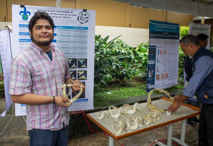 Por su parte, Luis Enrique Limón Hernández, del noveno semestre de Biología, habló un poco de su trabajo de investigación que versa sobre analizar los dientes de tiburón y la fórmula dental de las especies, para determinar un sistema que permita identificarlas.