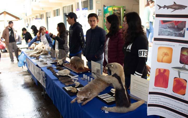 Los estudiantes también explican a los interesados con qué tipo de organismos trabajan, por ello la muestra del herpetario de la Facultad. Además, en esta edición se contó con la participación del Instituto de Investigaciones Biológicas (IIB) que exhibió una colección de mamíferos terrestres y marinos.