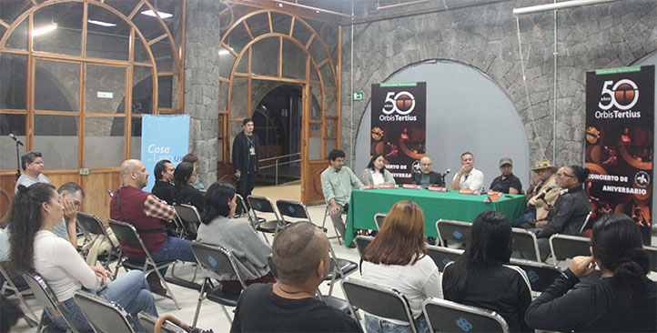 20/10/2025, Xalapa, Ver.- Con motivo del 50 aniversario de la agrupación universitaria Orbis Tertius, se realizó un conversatorio en el que participaron integrantes de distintas generaciones, quienes compartieron recuerdos, aprendizajes y experiencias que dan cuenta de la trayectoria del ensamble, que es referente del jazz en Veracruz y en el país.