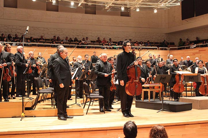 La velada musical inició con el Concierto para violonchelo Número 2 de Penderecki, interpretado por el chelista israelí Amit Peled. Cabe mencionar que se trató de un estreno para efectuarlo en esta ciudad.