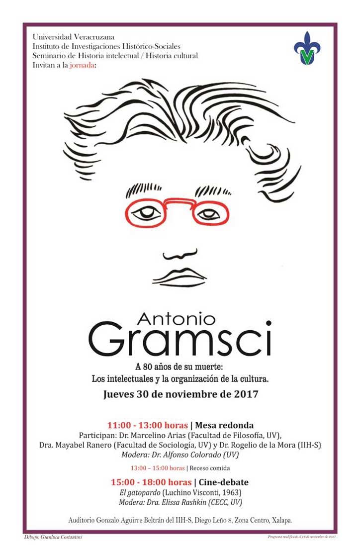28/11/2017, Xalapa, Ver.- El pensamiento de Antonio Gramsci, filósofo, teórico y político italiano, es más actual y vigente, por ello el Seminario de Historia Intelectual del Instituto de Investigaciones Histórico-Sociales (IIH-S) de la Universidad Veracruzana (UV) organizará la Jornada “Antonio Gramsci. A 80 años de su muerte: Los intelectuales y la organización de la cultura”.