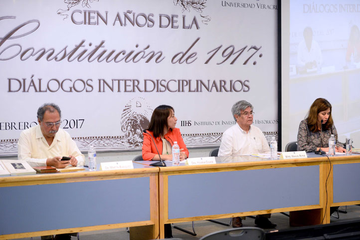 Xalapa, Ver., 16/02/2017.- Posterior a la promulgación –hace 100 años– de la Constitución Política de los Estados Unidos Mexicanos, diversas facciones –entre industriales y gremios de trabajadores– buscaron resolver los problemas generados por el conflicto presionando al naciente Estado mexicano, plantearon los académicos del Instituto de Investigaciones Histórico-Sociales (IIH-S) de la Universidad Veracruzana (UV) que participaron en el Foro Académico “Cien años de la Constitución de 1917: diálogos interdisciplinarios”.