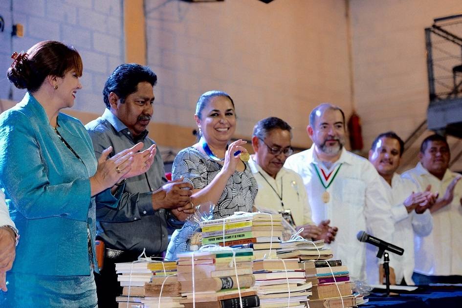 Pero, además, Sara Ladrón de Guevara honró en su discurso la memoria de los 43 estudiantes de la escuela normal rural “Raúl Isidro Burgos”, de Ayotzinapa, Guerrero, desaparecidos justamente un año atrás.