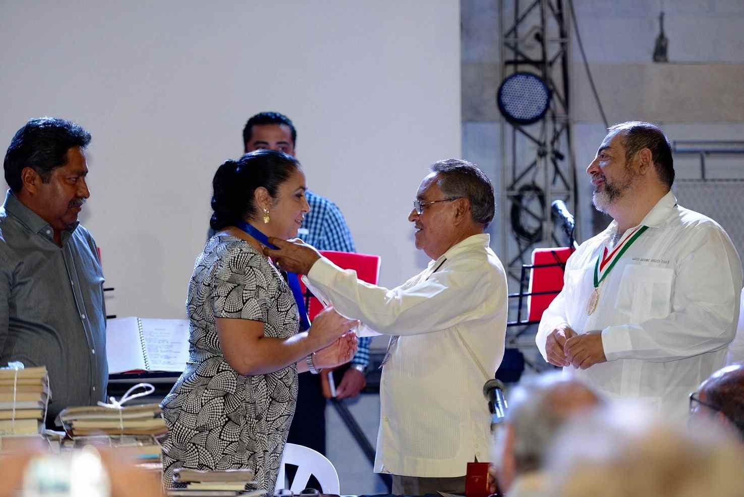 Tecolutla, Ver.- La rectora de la Universidad Veracruzana (UV), Sara Ladrón de Guevara, recibió el sábado 26 de septiembre la medalla “Francisco Xavier Clavijero” en reconocimiento a su trayectoria en el rescate y difusión del patrimonio cultural de nuestro estado.