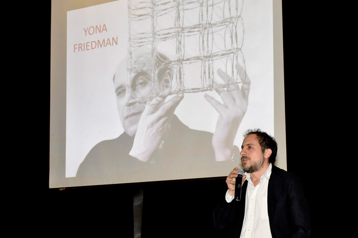 Tras la inauguración, Lo Giudece ofreció la conferencia magistral “La arquitectura de Yona Friedman”, de quien dijo es difícil encuadrarlo dentro de un área precisa porque es carpintero, escultor y escritor que ve el mundo no sólo como una entidad descriptible por los métodos de la estadística, sino como un mundo compuesto de entidades individuales con un comportamiento imprevisible.