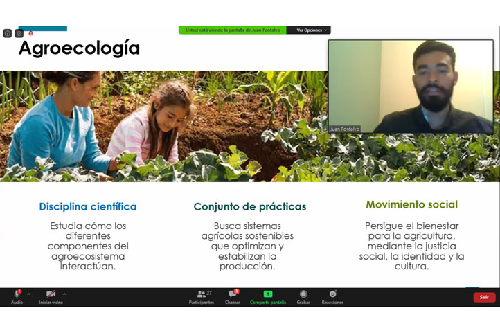La charla tuvo lugar a través de la plataforma digital Zoom, fue organizada por el Huerto Agroecológico de la UV y la Red de Agroecología de Costa Rica; participaron Juan Fontalvo, estudiante de posgrado de la UV, y Martha Orozco, coordinadora de la Maestría en Agricultura Ecológica de la Universidad Nacional de Costa Rica.