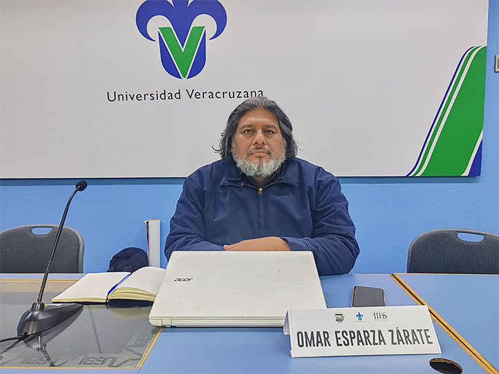 21/11/2025, Xalapa, Ver.- Omar Esparza Zárate, coordinador del Movimiento Agrario Indígena Zapatista (MAIZ), declaró que las instituciones de educación superior son un puente para fortalecer una conciencia crítica que permita desarrollar una mirada desde lo social. Lo anterior, al dictar una conferencia en la Unidad de Servicios Bibliotecarios y de Información de la Universidad Veracruzana (UV).