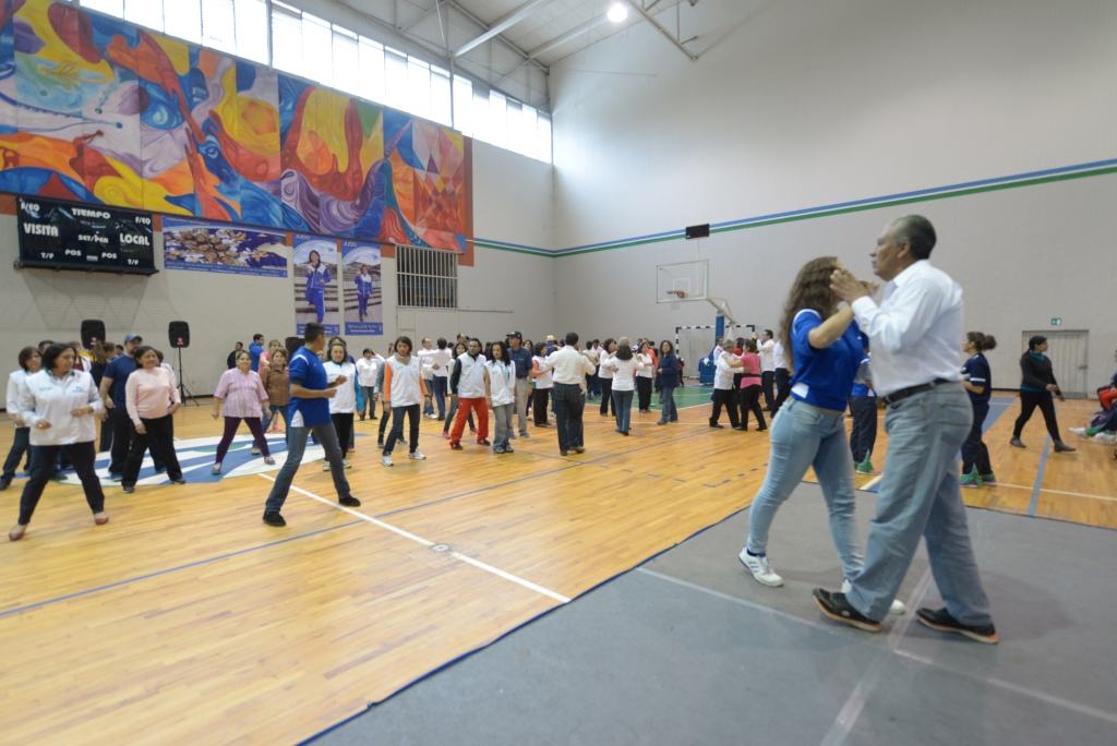 Después de concluida la ceremonia protocolaria, se invitó a los Guardianes de la Salud, autoridades universitarias y trabajadores asistentes, a participar en la activación física, quienes no dudaron en hacerlo. Las chamarras, bufandas, mochilas y bolsas fueron dejadas a un lado pese al frío que se sentía, para hacer ejercicio y bailar en la duela del gimnasio.