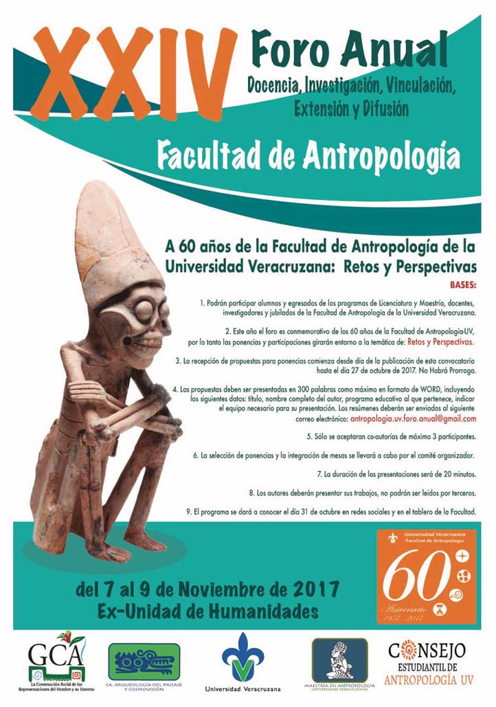 24/10/2017, Xalapa, Ver.- La Facultad de Antropología de la Universidad Veracruzana (UV) llevará a cabo el XXIV Foro Anual “Docencia, investigación, vinculación, extensión y difusión”, del 7 al 9 de noviembre, que tiene por objetivo reflexionar sobre los retos y perspectivas de esta disciplina.