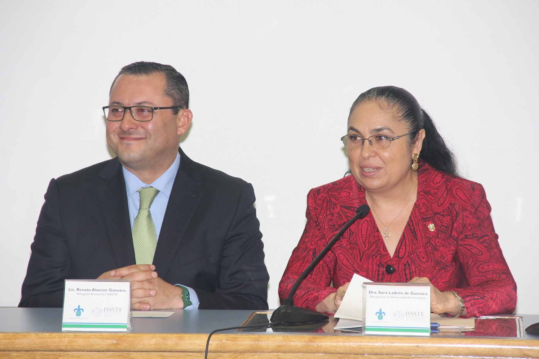 - Encabezaron este acto, la rectora Sara Ladrón de Guevara y el delegado del ISSSTE, Renato Alarcón Guevara