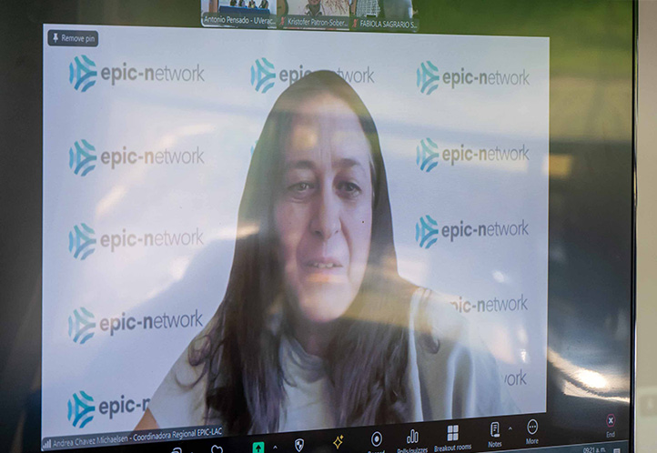 En su intervención virtual, Andrea Chávez Michaelsen, coordinadora regional EPIC-Latinoamérica y el Caribe, aplaudió que la UV impulse el intercambio de experiencias que llaman a la reflexión, a afrontar retos y avanzar hacia nuevas colaboraciones.