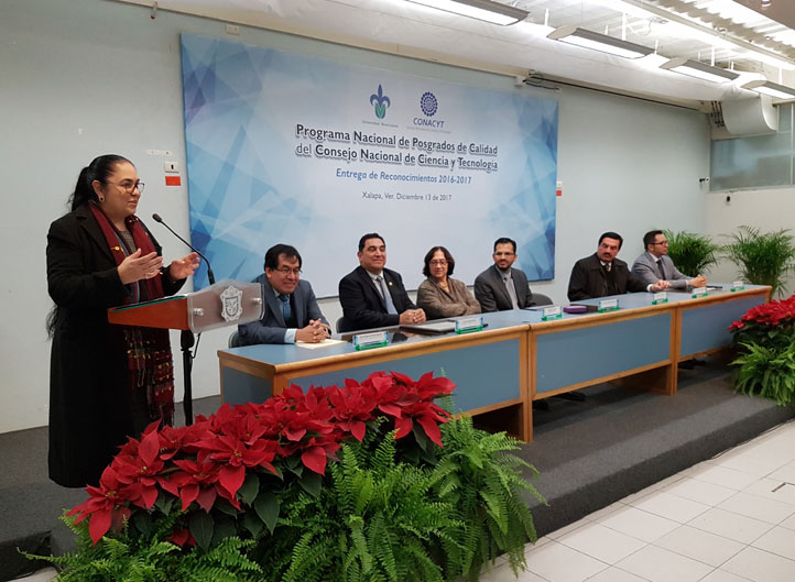 13/12/2017, Xalapa, Ver.- La Universidad Veracruzana (UV) entregó reconocimientos a coordinadores de 30 programas educativos (PE) que este año lograron ingresar o reafirmar su consolidación en el Programa Nacional de Posgrados de Calidad (PNPC) del Consejo Nacional de Ciencia y Tecnología (Conacyt), lo cual la sitúa en el sexto lugar del ranking nacional de universidades con más posgrados reconocidos por este organismo evaluador.