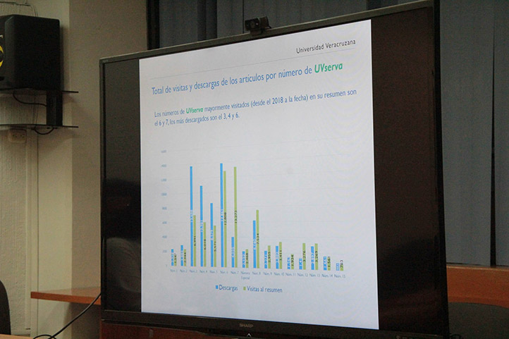 A la fecha, mencionó, la UV cuenta con 15 revistas incorporadas al OJS: nueve son publicadas por institutos de investigación, tres por centros, una por la Facultad de Arquitectura, una por la Dirección Editorial y otra por la Secretaría Académica, que es UVserva. Además, cinco de éstas se distribuyen en formato físico.