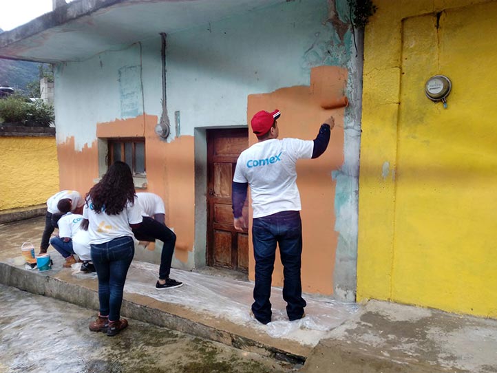 Los nueve días de arduo trabajo en campo incluyeron tareas de limpieza y desenraice de áreas con maleza, raspado de guarniciones, raspado y preparado de superficies de fachadas, así como la aplicación de aproximadamente 400 metros cuadrados de pintura vinílica, 40 metros cuadrados de pintura en herrería y 90 metros lineales de pintura en tráfico pesado en guarniciones.