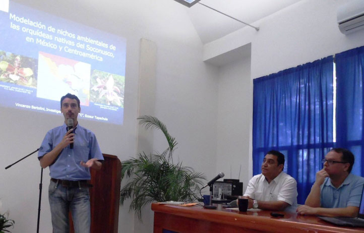 Tuxpan, Ver., 07/11/16.- Vincenzo Bertolini, investigador de El Colegio de la Frontera Sur (Ecosur), presentó en la Facultad de Ciencias Biológicas y Agropecuarias (FCBA) de la Universidad Veracruzana (UV) en Tuxpan algunos de los estudios que ha realizado sobre la conservación de las orquídeas nativas de la región del Soconusco.