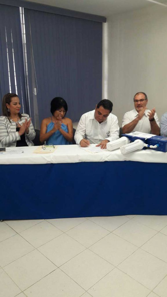 Después se realizó la firma de los documentos protocolarios y la directora de la FCQ, Lizeth Ríos Velasco, recibió oficialmente la purificadora.