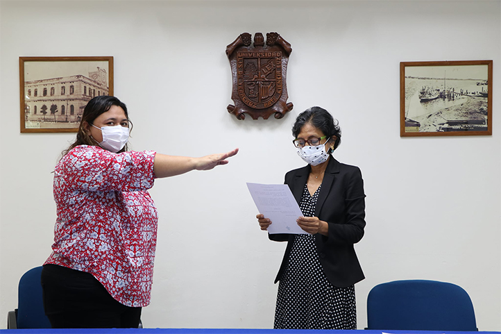 Por su parte, María Inés Quevedo López, secretaria regional de Administración y Finanzas, leyó la semblanza de la nueva Directora y dijo que es Licenciada y Maestra en Trabajo Social, ha sido docente por asignatura y Secretaria de la Facultad de enero de 2019 a la fecha, entre otras actividades profesionales.