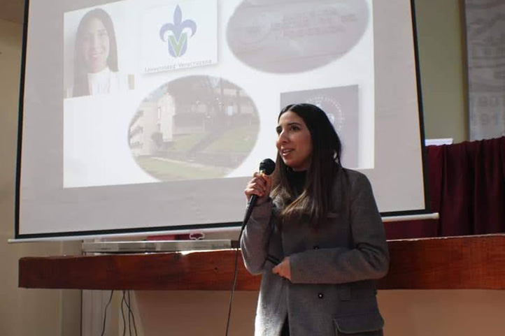 Lourdes Paola Hernández Rivera, egresada y académica de la Facultad de Odontología, durante su ponencia