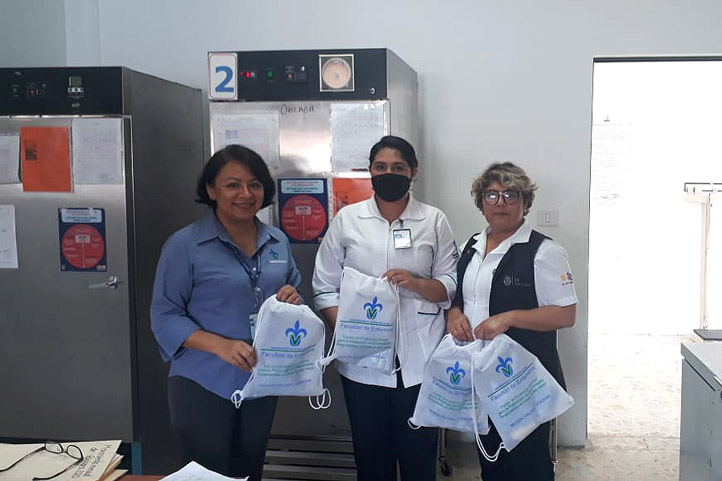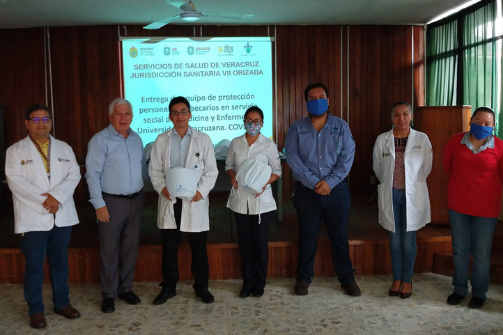 En la Facultad de Enfermería se repartieron cuatro kits para pasantes de la Jurisdicción Sanitaria N° 7 en Orizaba, cinco para pasantes de instancias de salud en el municipio de Coscomatepec y tres más de Zongolica; en la Facultad de Medicina se dejaron 38 kits para prestadores de servicio adscritos a la Delegación Regional Veracruz Sur del Instituto Mexicano del Seguro Social (IMSS), diez para pasantes en el Hospital Naval de Veracruz y siete más para pasantes adscritos a instancias de salud en el municipio de Cosamaloapan.