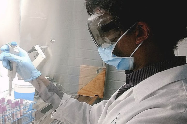 • Daniel Sokani Sánchez Montes, de la Facultad de Ciencias Biológicas y Agropecuarias en la región Poza Rica-Tuxpan, elabora e interpreta pruebas para la detección de Covid-19