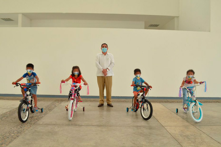 Niñas y niños de Poza Rica, acompañados de sus madres, recibieron bicicletas como parte de la campaña “Apadrina una carta desde casa”