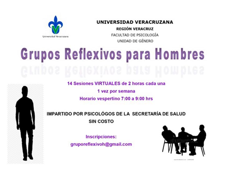 13/05/2021, Boca del Río, Ver.- La Facultad de Psicología de la Universidad Veracruzana (UV), a través de su Unidad de Genero e Interculturalidad, en colaboración con la Jurisdicción Sanitaria Número 8 integraron Grupos Reflexivos para Hombres y Grupos Reflexivos para Mujeres e invitan a la comunidad universitaria a formar parte de las sesiones que serán impartidas por especialistas de la Secretaría de Salud, una vez por semana.