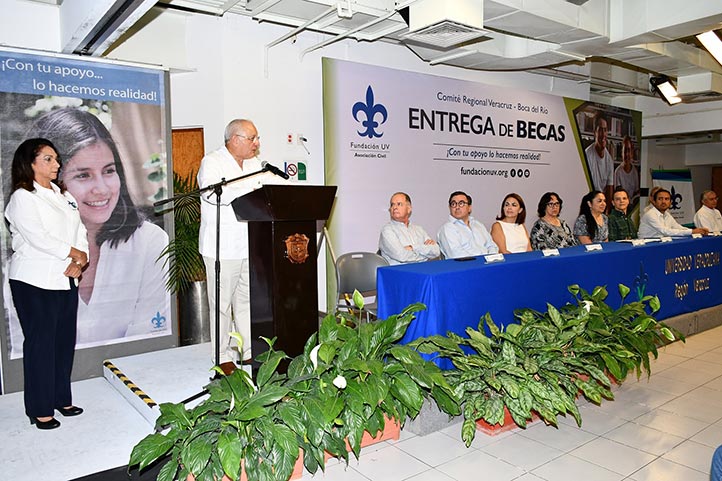 Acompañaron a la Rectora y al Vicerrector, la secretaria Académica, Magdalena Hernández Alarcón; el alcalde de Veracruz, Fernando Yunes Márquez; el presidente de la Junta Directiva de la Fundación UV, Víctor Aguilar Pizarro, y el vicepresidente del Comité Regional de Becas, Gustavo Sousa Escamilla.
