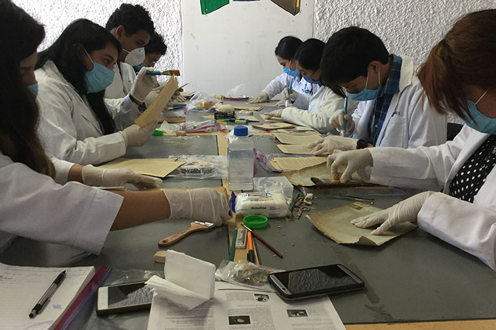 Las direcciones de la Facultad de Historia y de la Biblioteca de la Ciudad convinieron, en diciembre de 2017, en colaborar en la restauración de parte del acervo citado, a través del taller que imparte la académica Guadalupe Sánchez Álvarez.