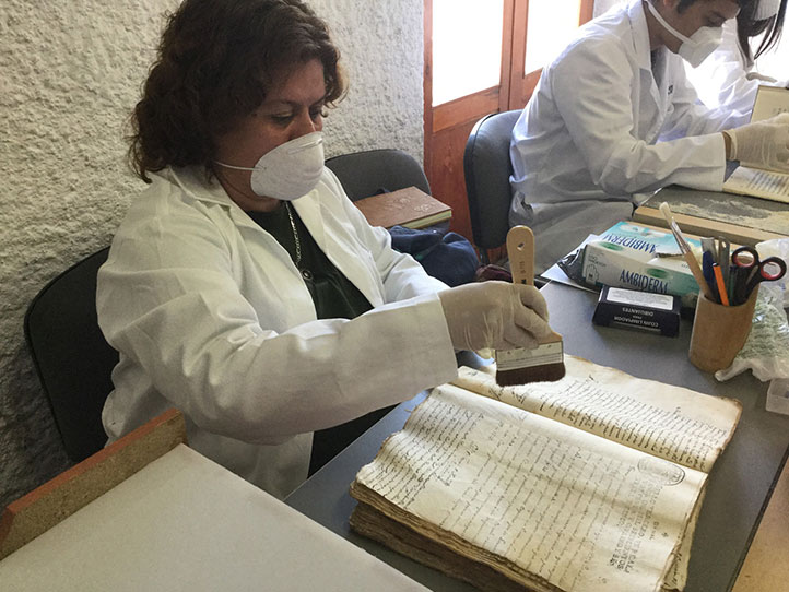 “En los últimos 25 años el fondo se descuidó, para restaurarlo necesitamos el concurso de la Facultad de Historia. Yo estoy muy contento con los 17 universitarios, quienes costearon sus batas, cubrebocas, guantes, brochas y gomas. Me entusiasma el apoyo solidario de la Facultad, de la cual soy egresado; nosotros sólo estamos facilitando la materia prima.”